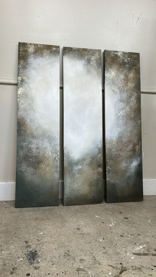 “Realm VIII - The Columns" Original Artworks On Canvas 3 no 25x100cm