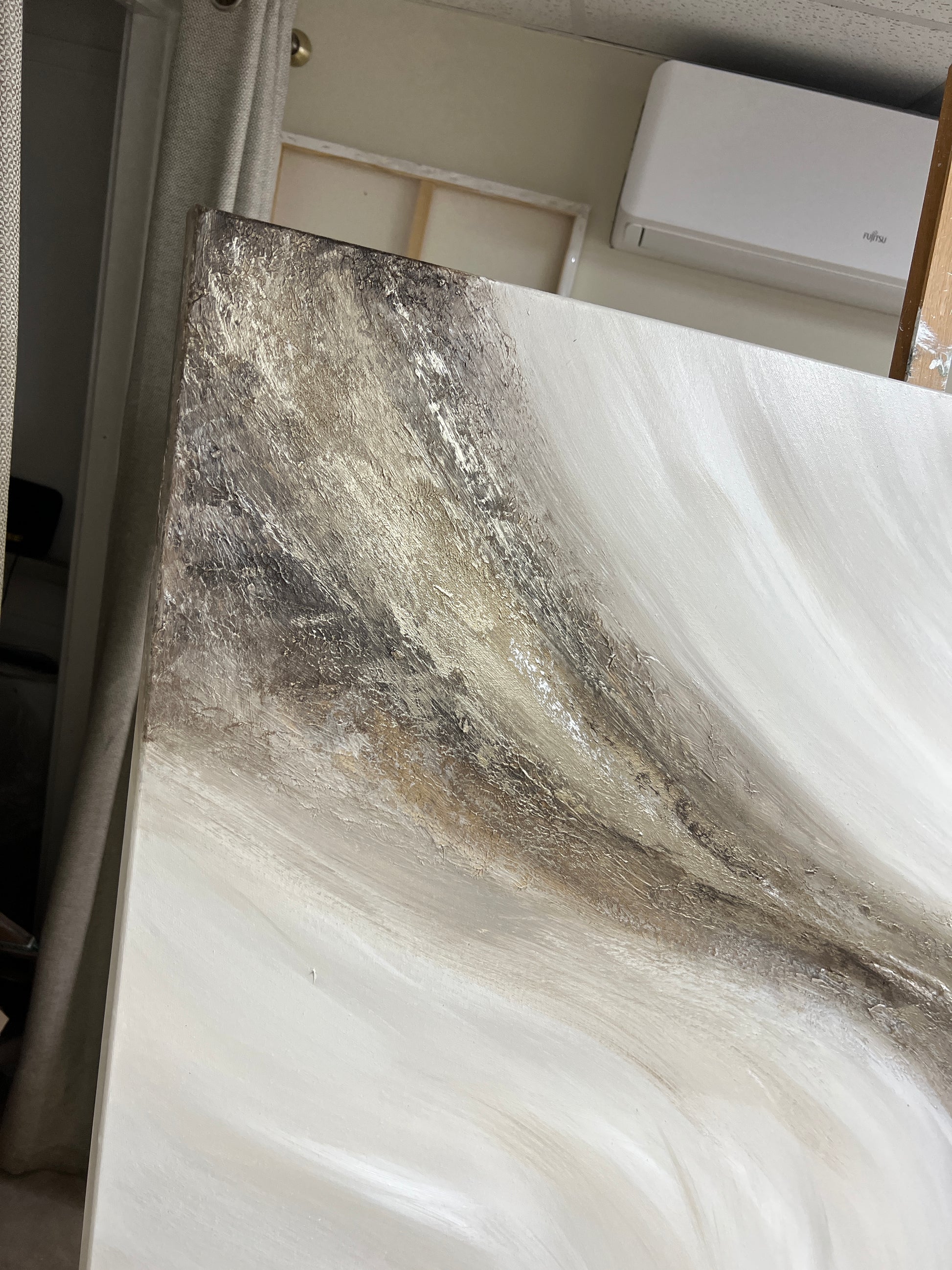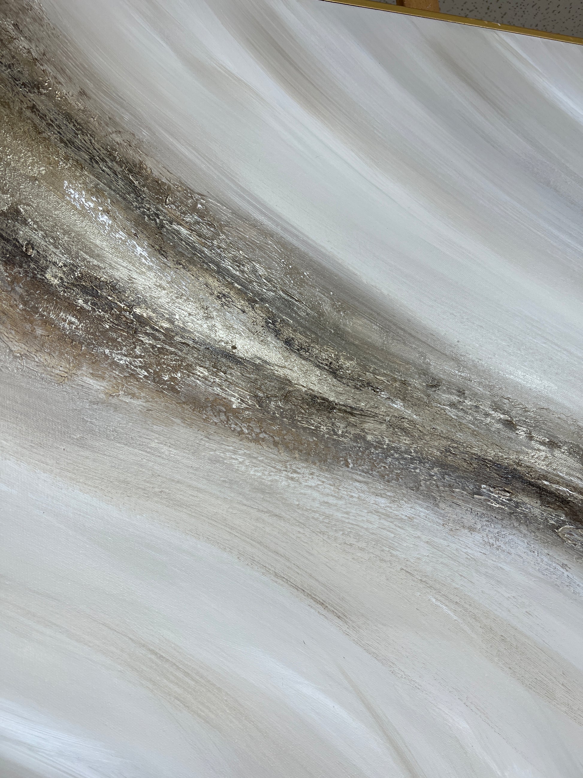 ‘Chestnut' is a heavily textured mixed brown, cream, taupe, off white and golden bronze impactful luxurious artwork on canvas size 100x120cm (Please note framing adds around 3-4cm all round dependant on frame option selected