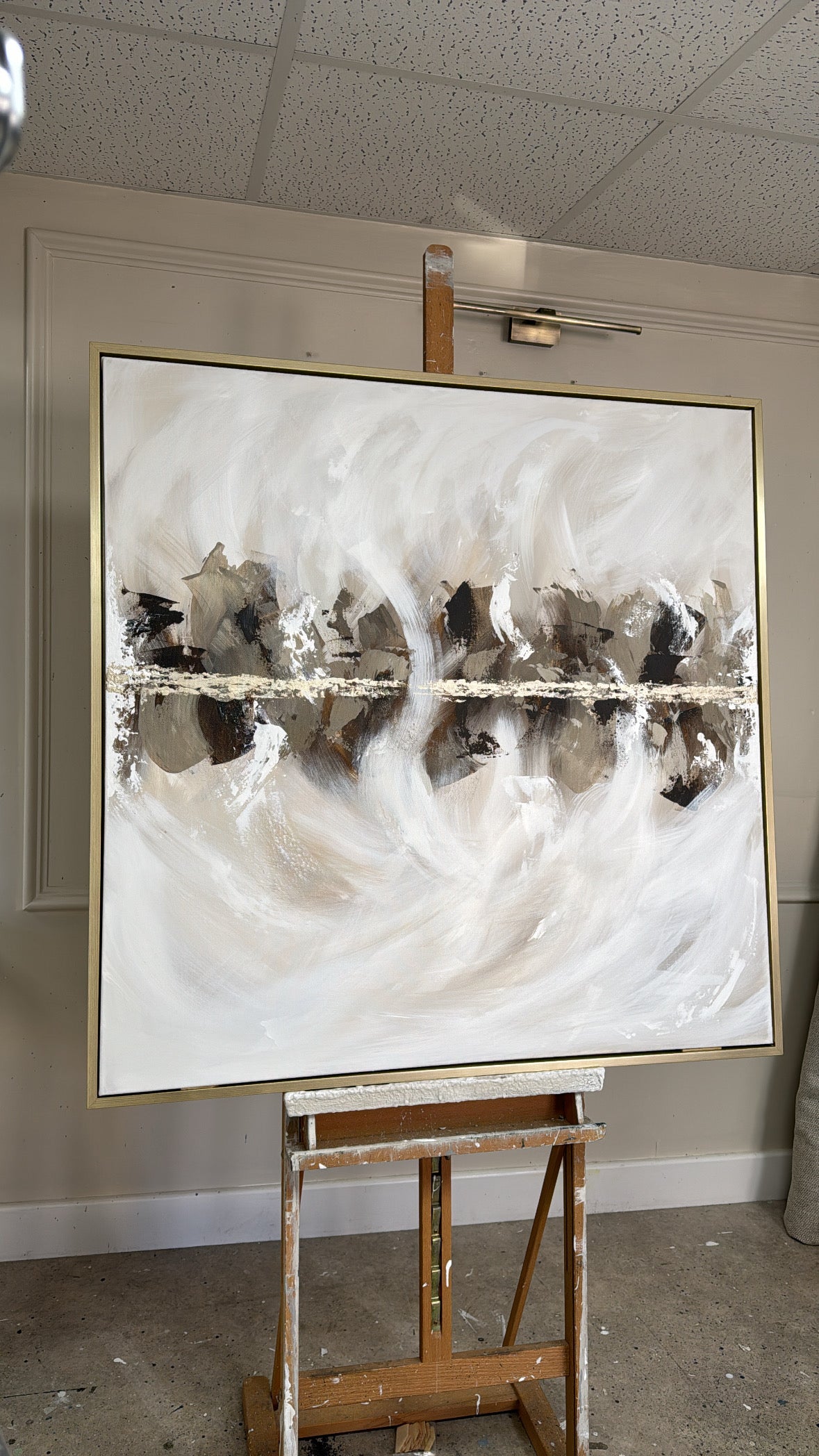 'Cinnamon' Originally shown here is a cream, browns, tans and a gold centre - Featured is a 100x100 cm piece in champagne frame