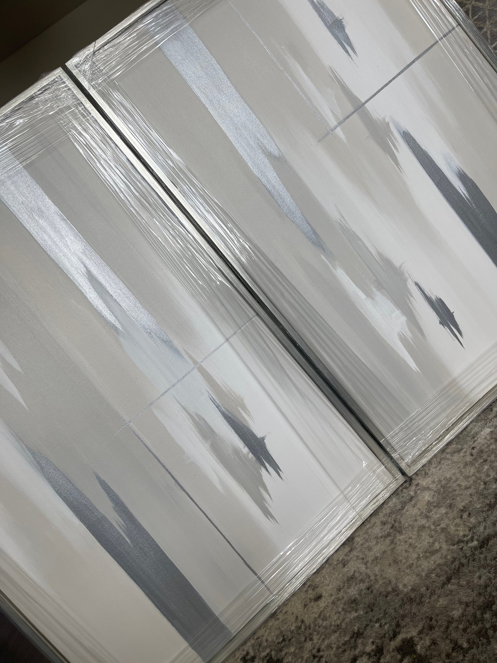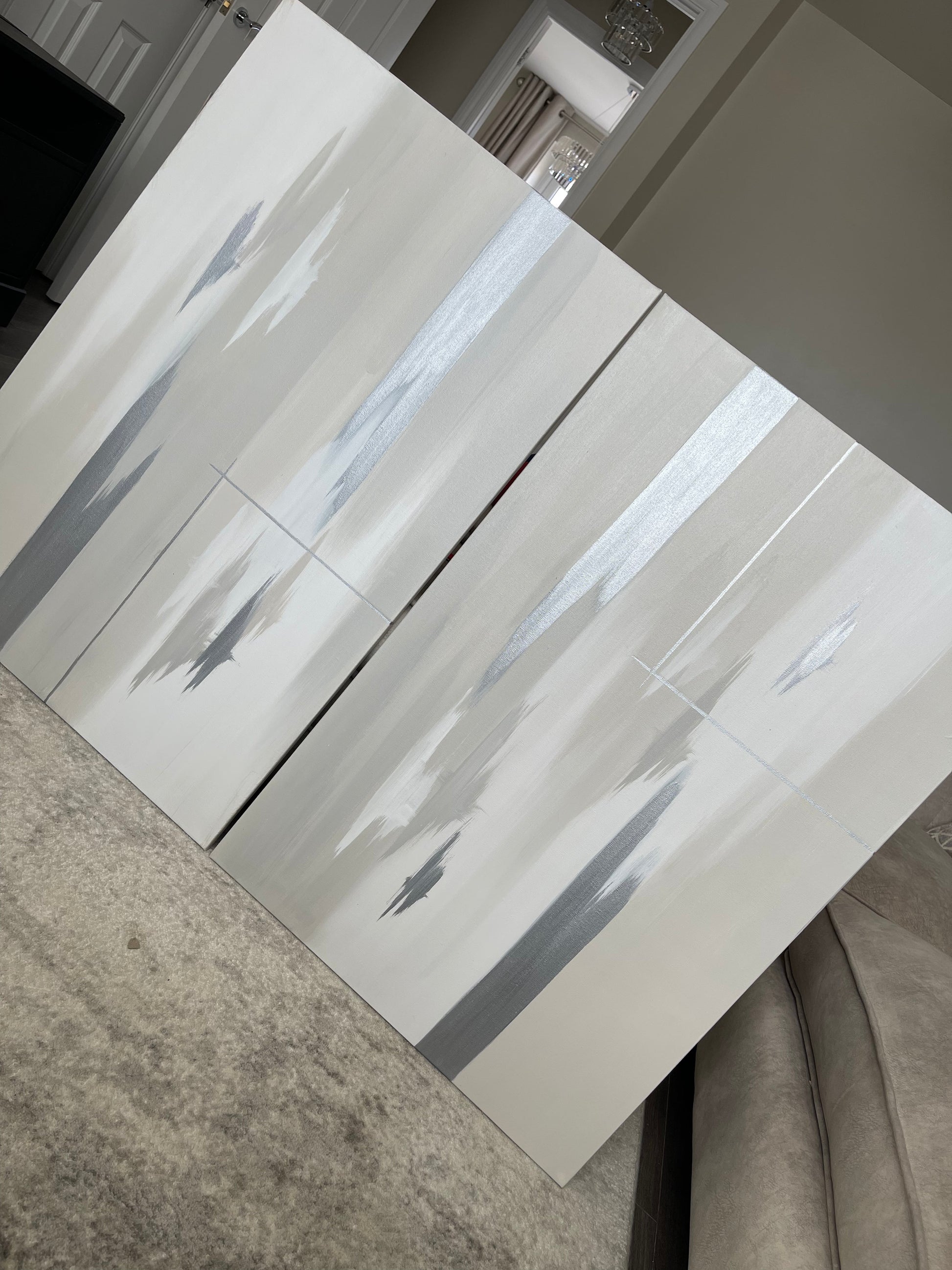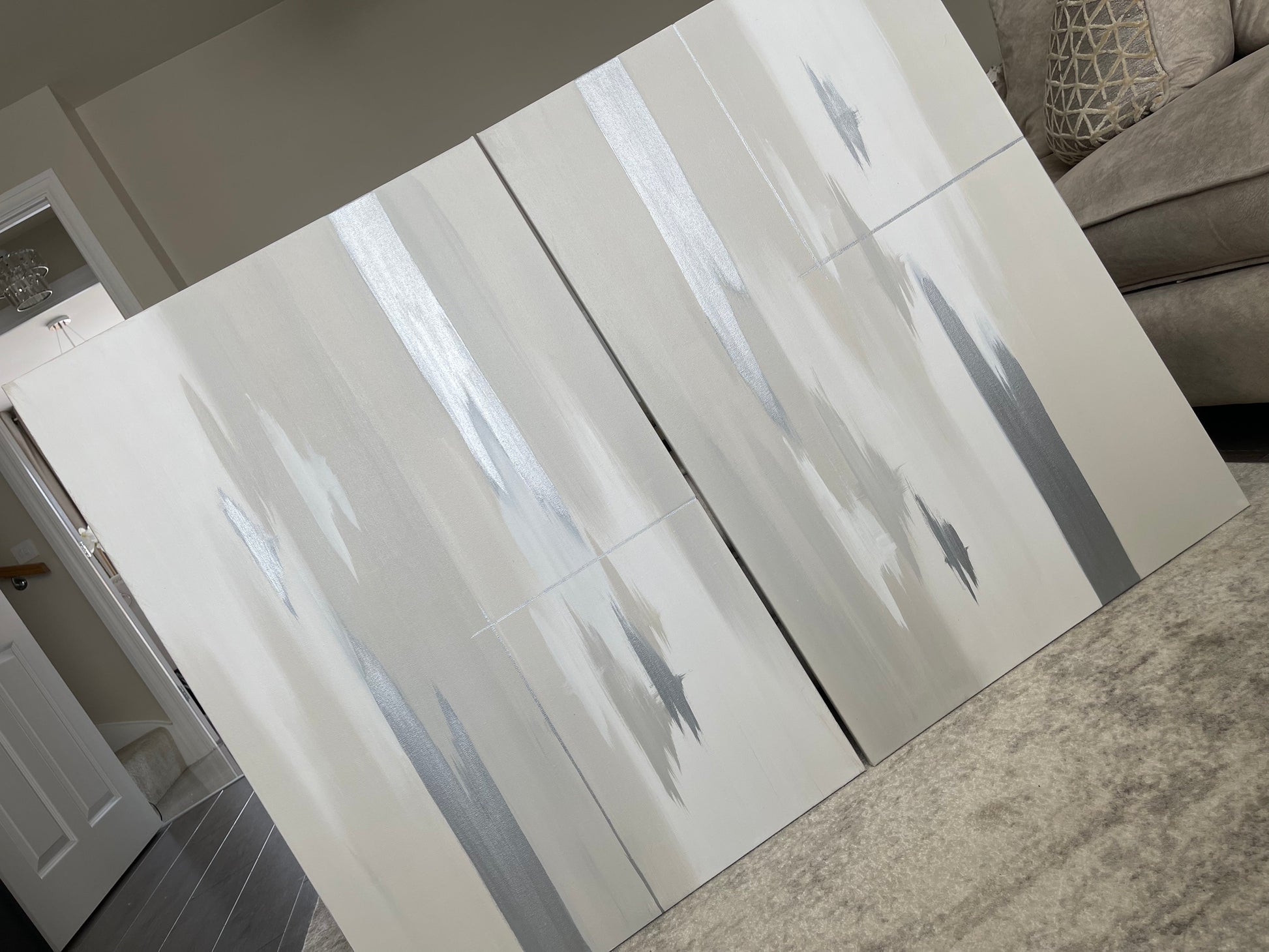 'Silver Linings' Originally shown here is grey, greige and white version with silver streaks - Featured is a due of 61x91cm sized pieces
