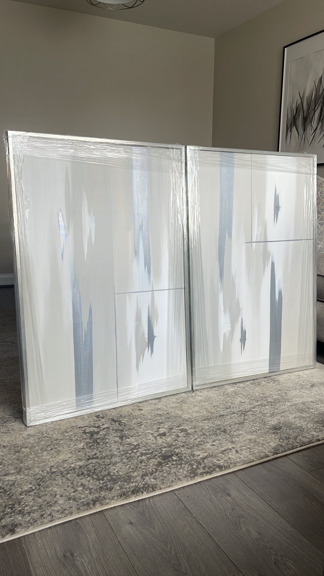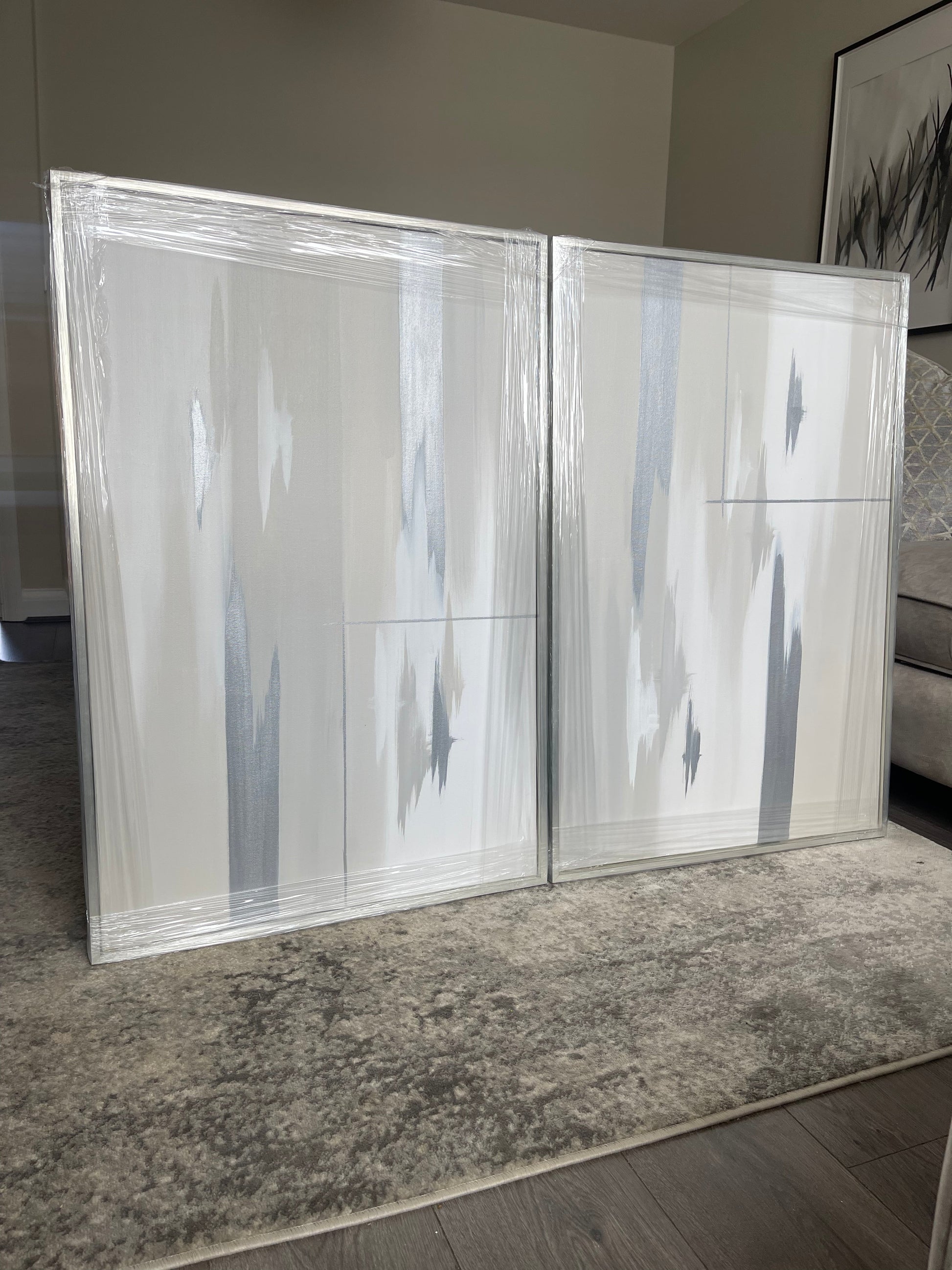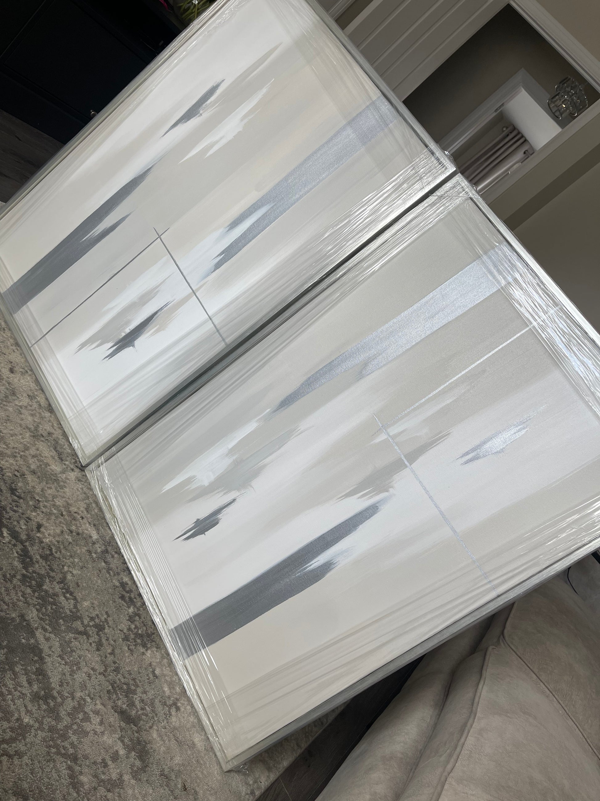 'Silver Linings' Originally shown here is grey, greige and white version with silver streaks - Featured is a due of 61x91cm sized pieces