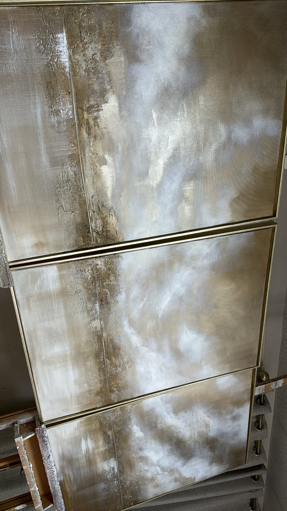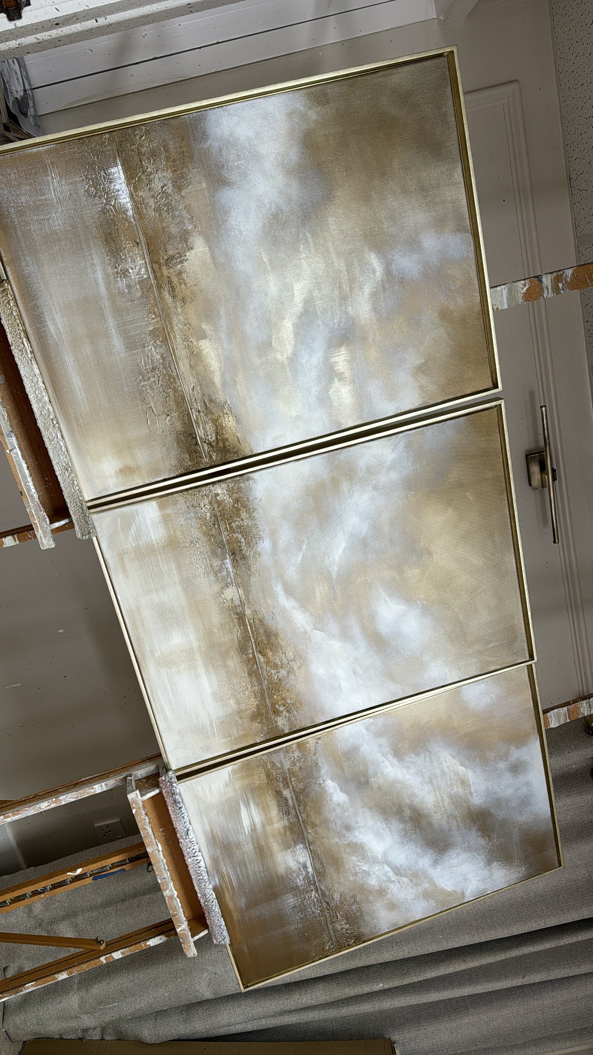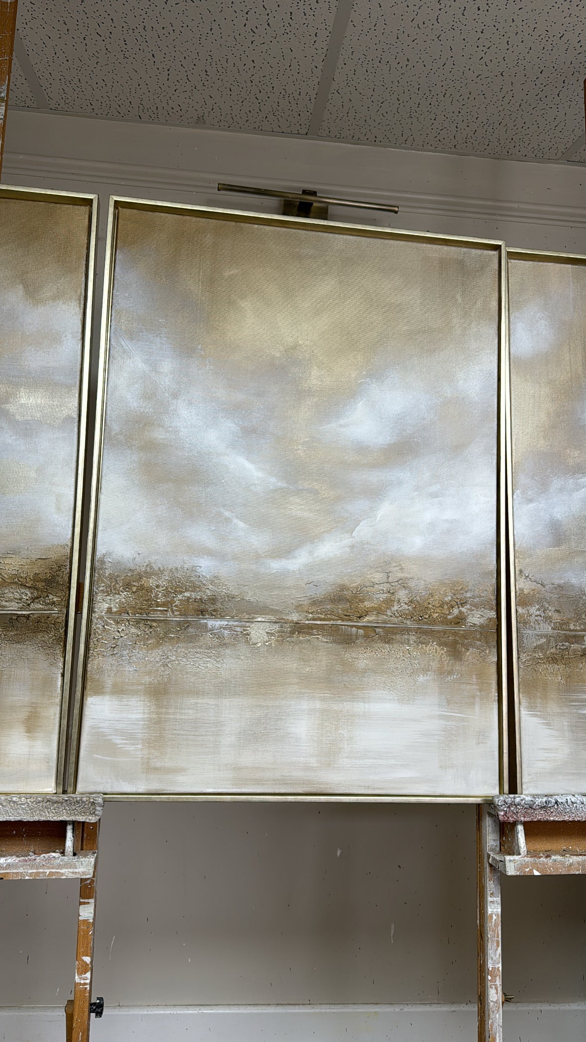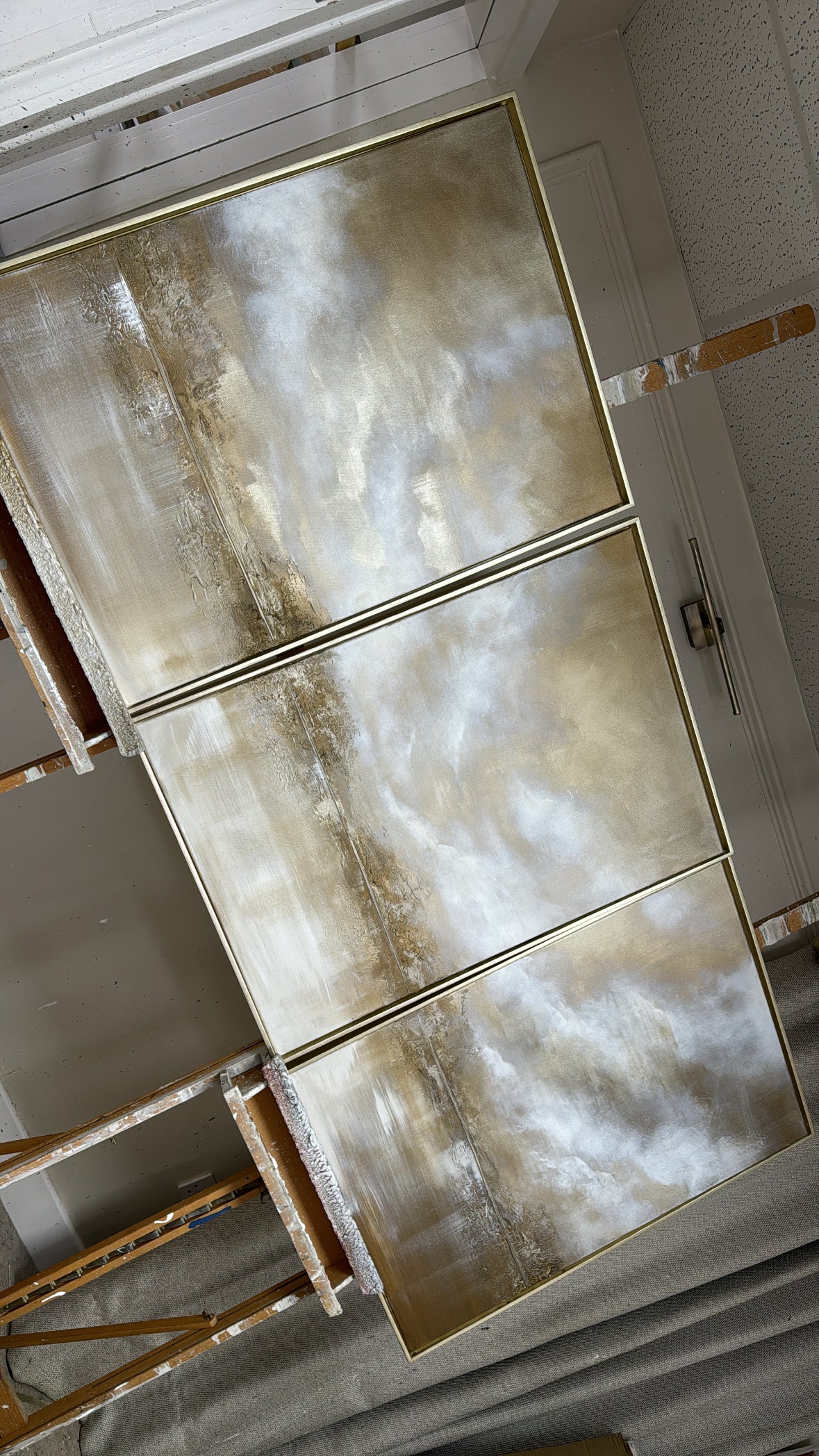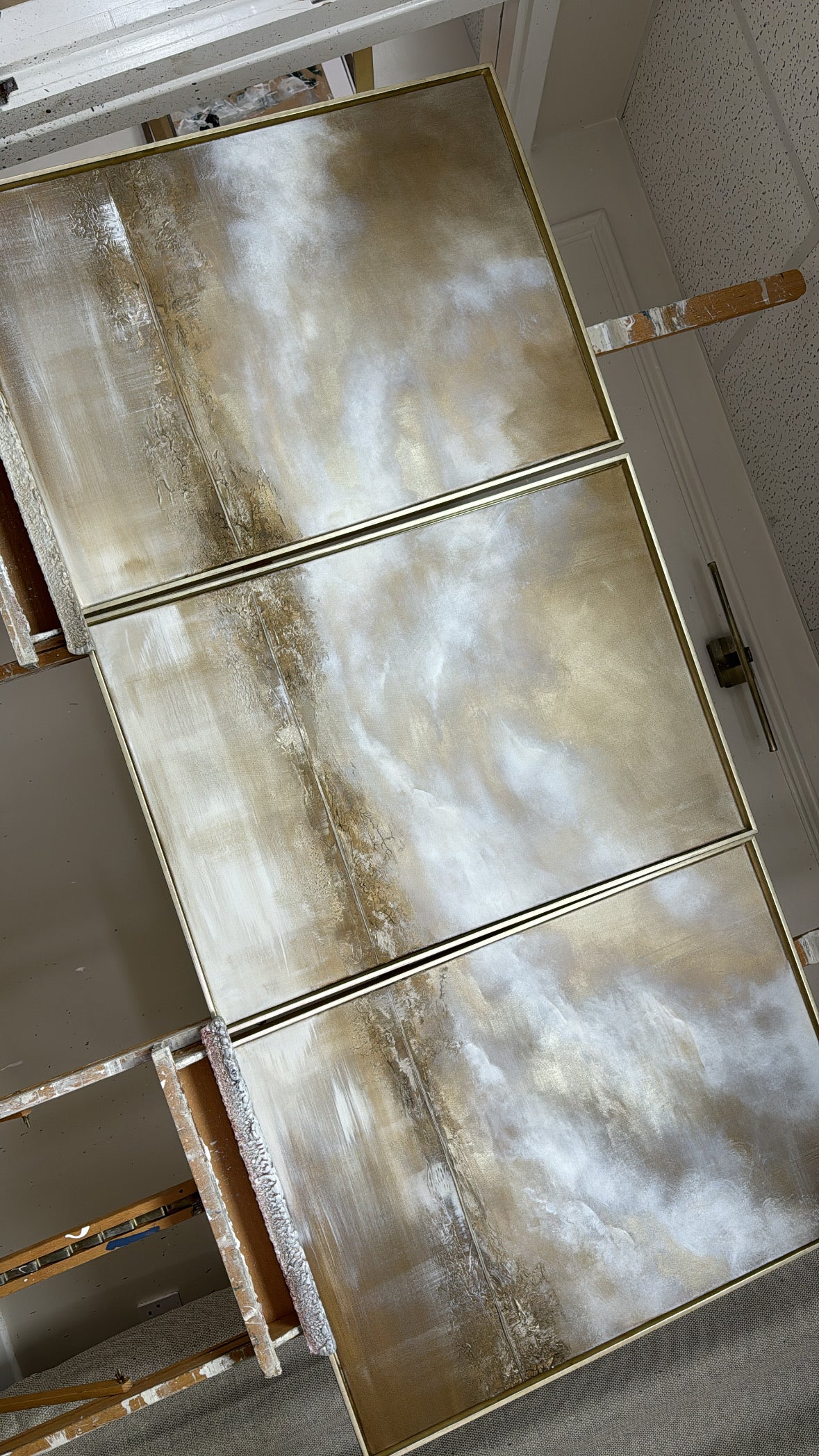 Embrace the skies glow. Gold from the sun weaving through clouds is what always gets me the most! It makes me draw drop every time! How we exist amongst such beauty, I’ll never comprehend it! It’s heaven! These pieces use the most gold I think I’ve ever used a complete bass layer of it!! Which is a statement in itself!! As grand as the sky itself!!