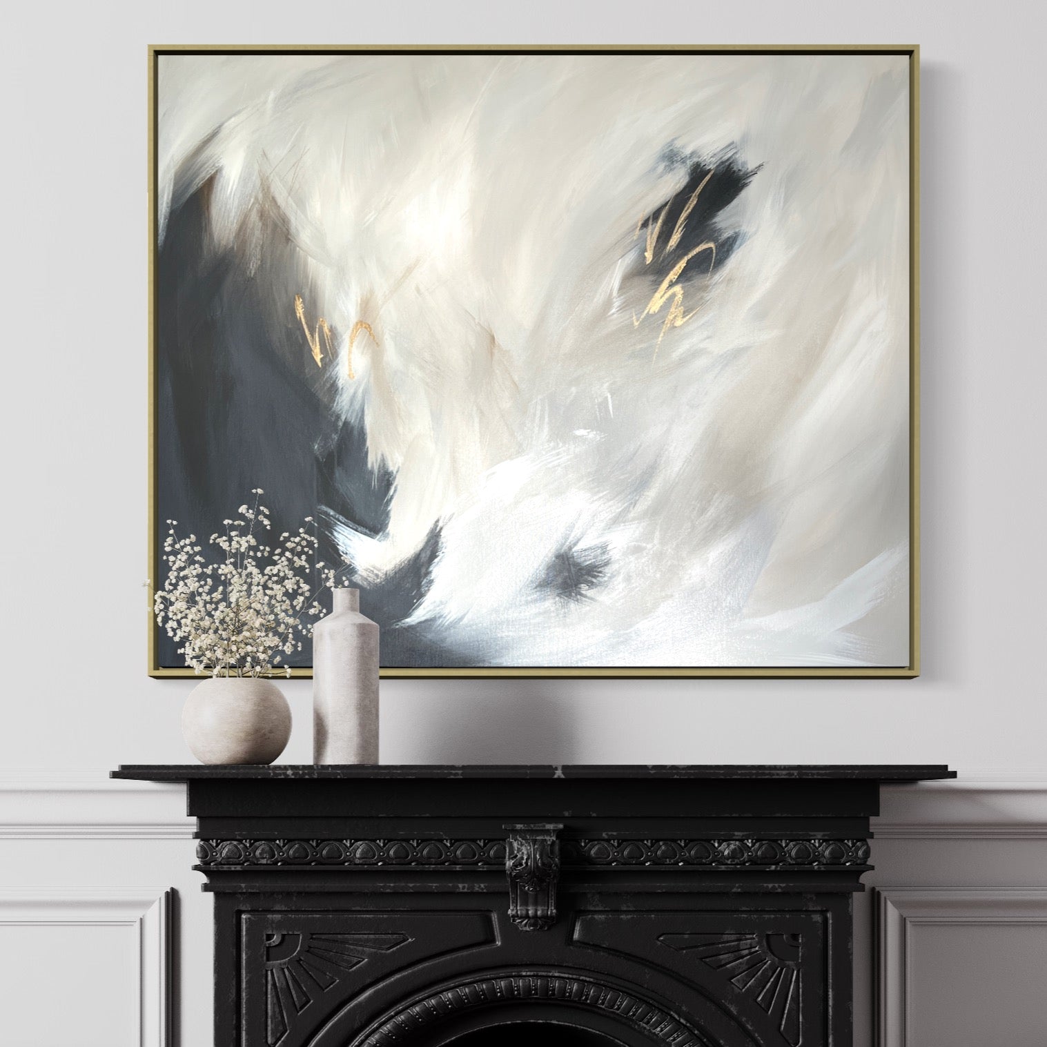 'Trouvaille' Originally shown here in colours shades black, earthy elements of browns and taupe, cream, grey, off whites and golden metallic elements. In Size 100x120cm