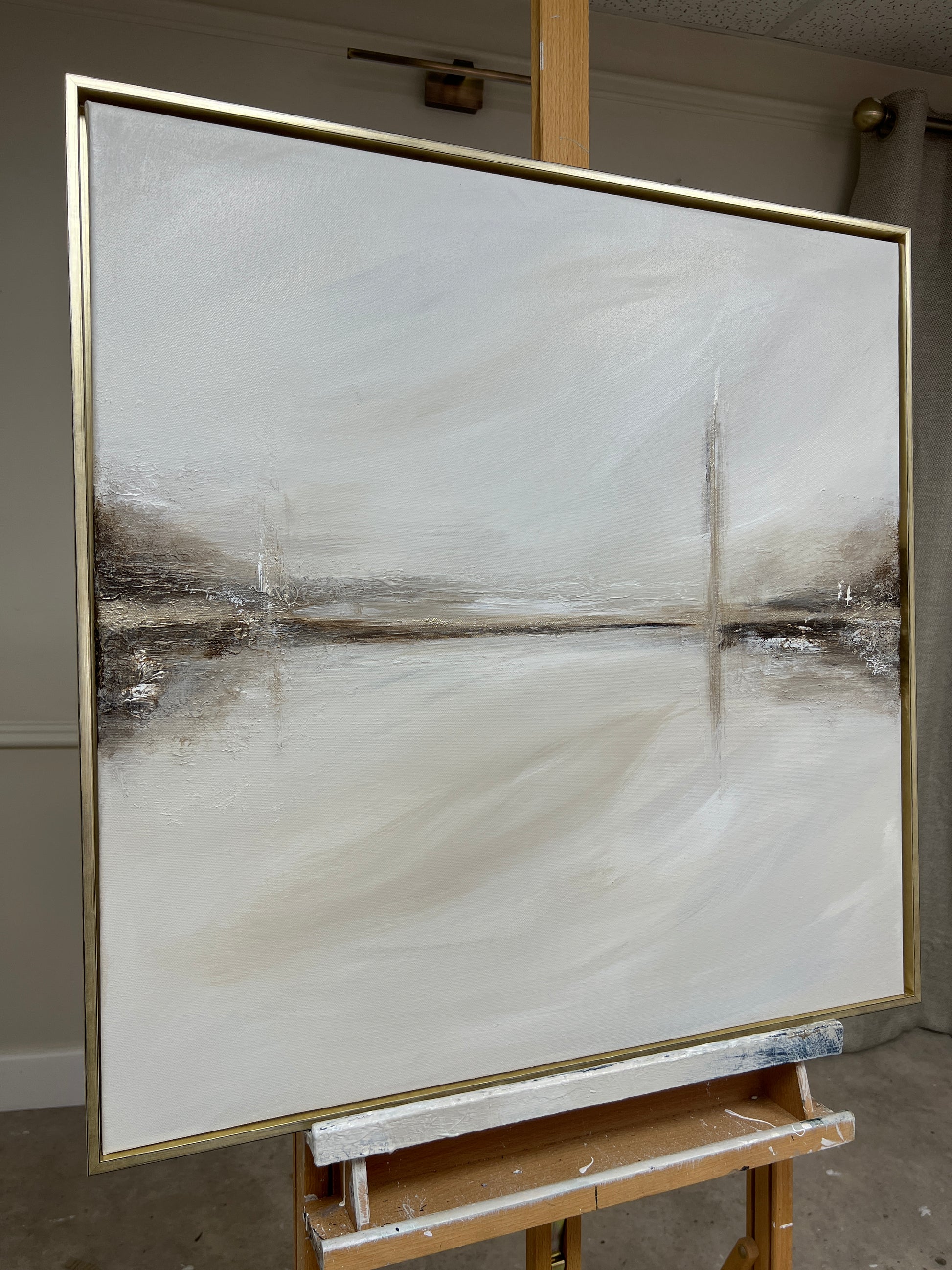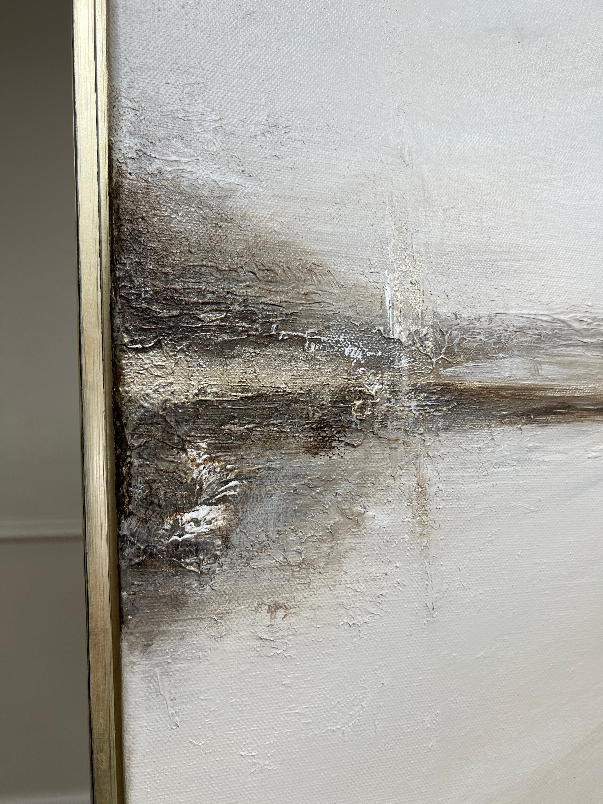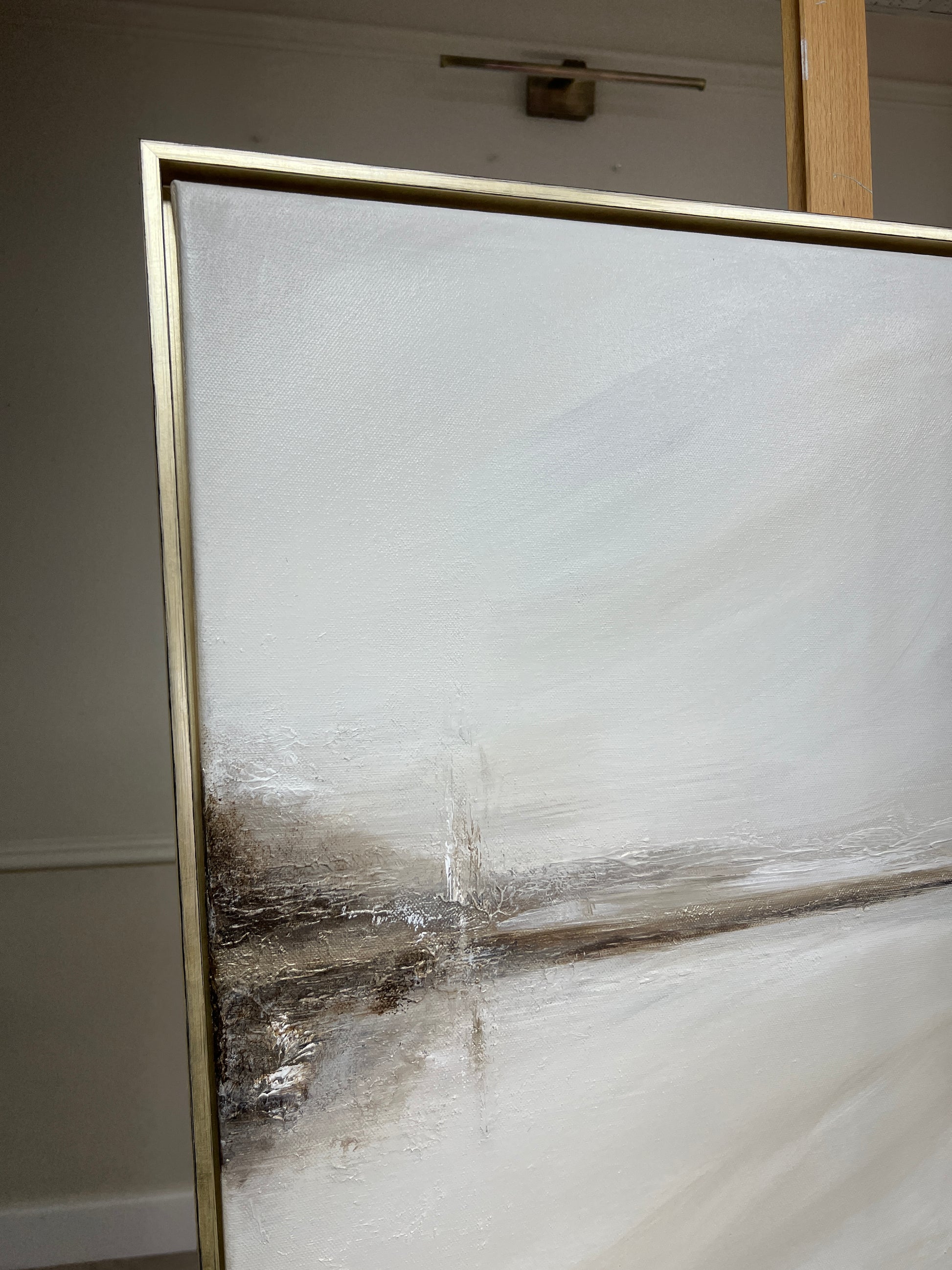 ‘Twilight II' Has been created with warm rusted browns, taupe, cream and off white with a textured gold centre . The size of the canvases are 70x70cm (Please note framing adds around 3-4cm all round dependant on frame option selected)