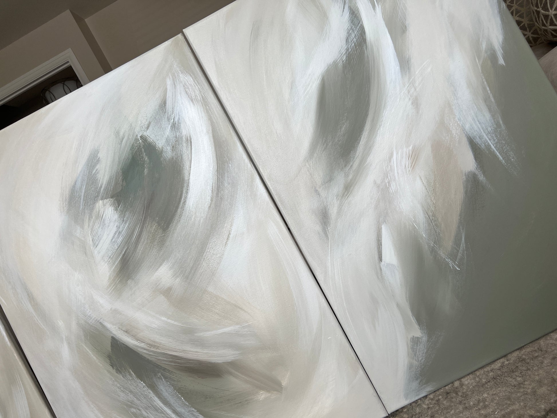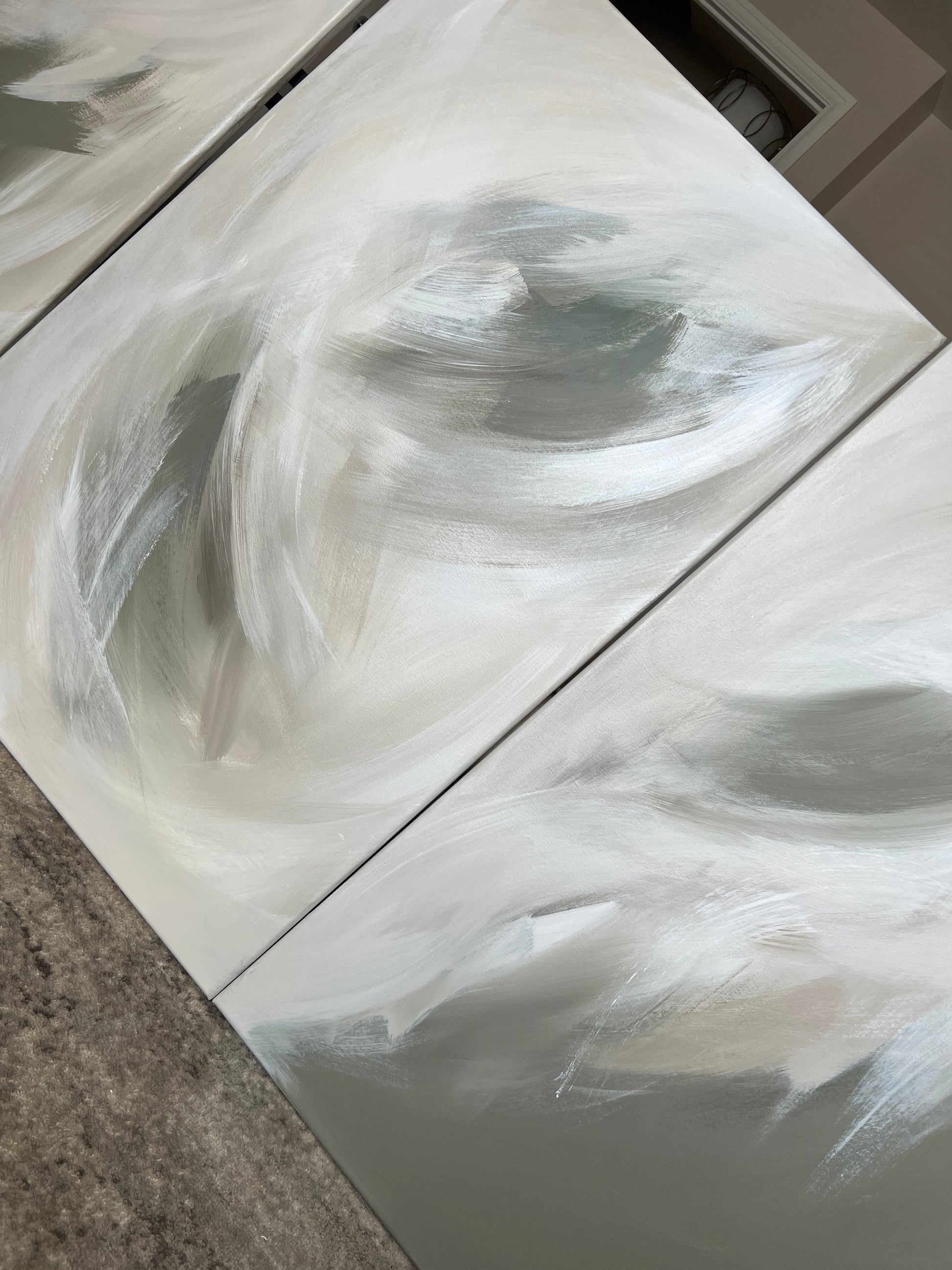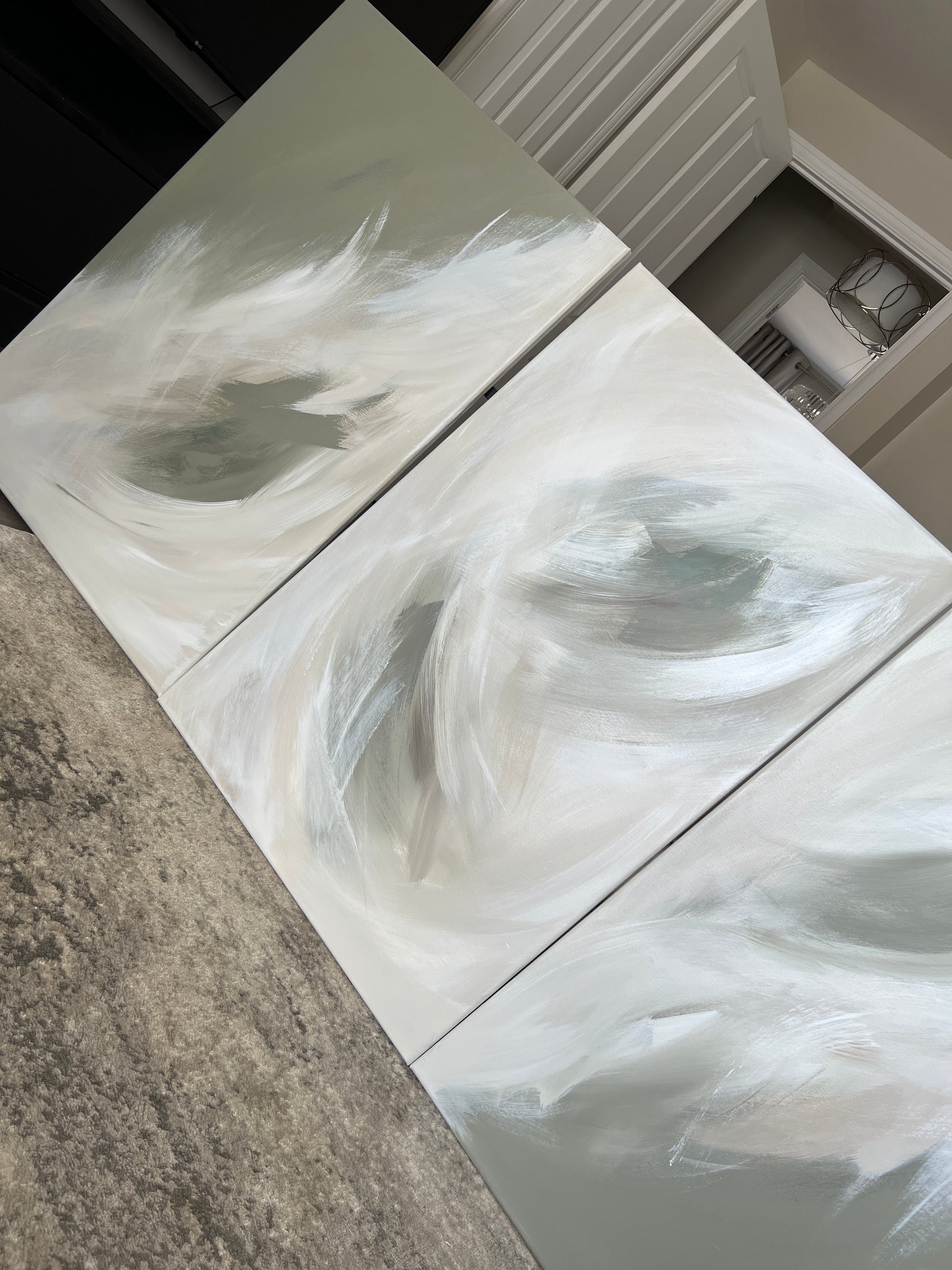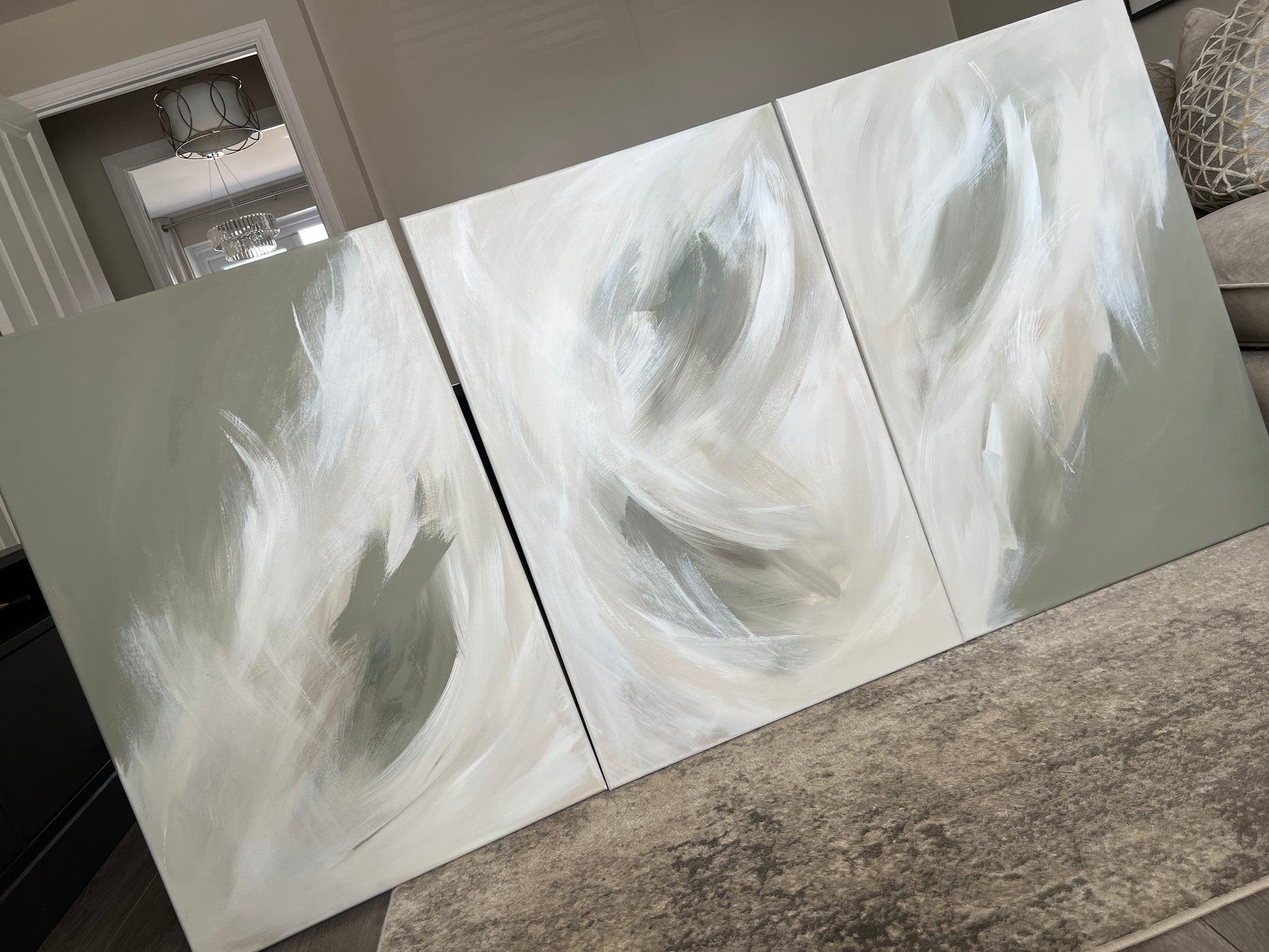 ‘Verdure Trio' was Created with deep dusky greens, subtle taupe's, , creams, soft beige and off white undertones. The size of the canvases are 61x91cm and are unframed in the images above. (Please note framing adds around 3-4cm all round dependant on frame option selected)