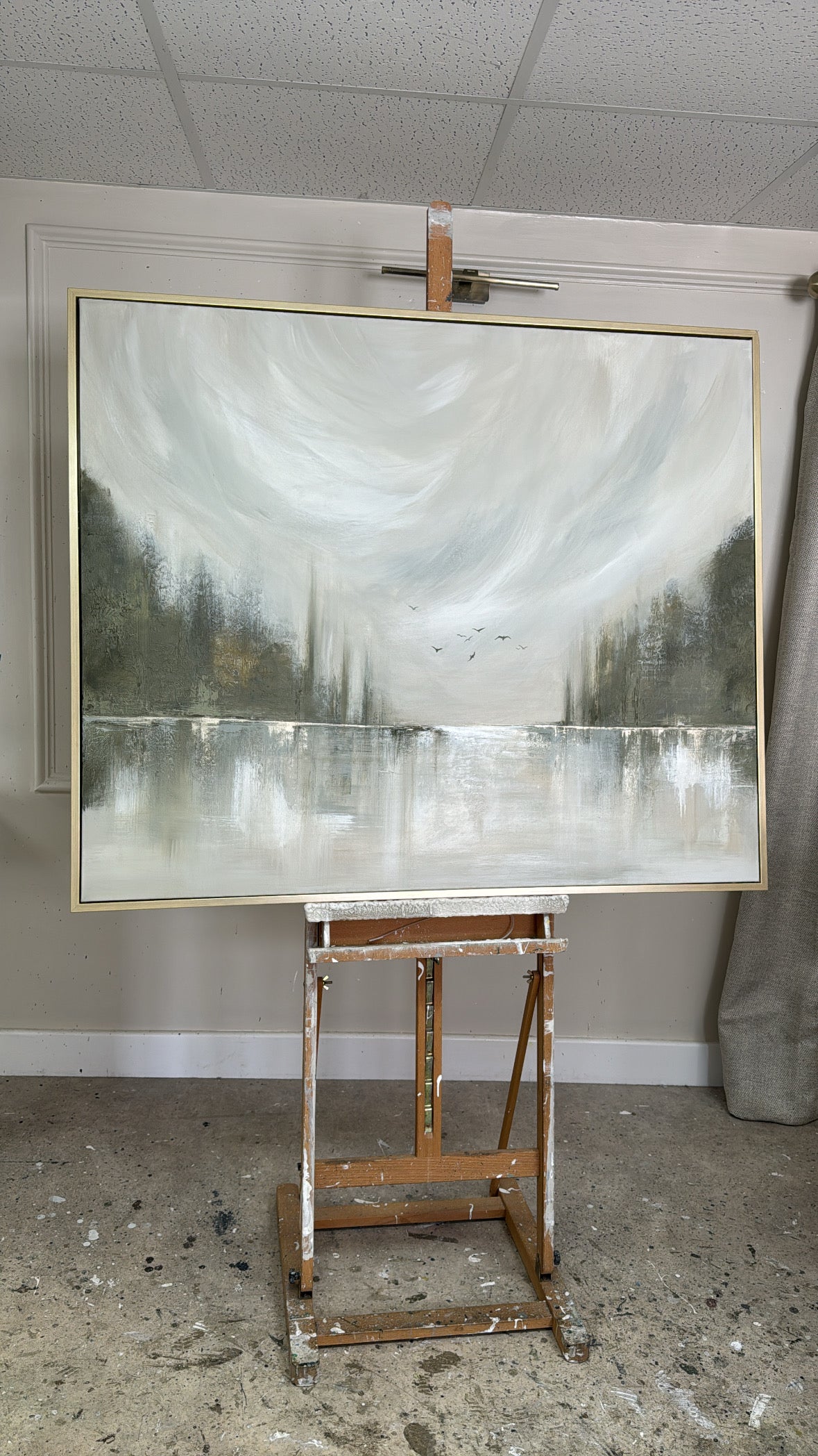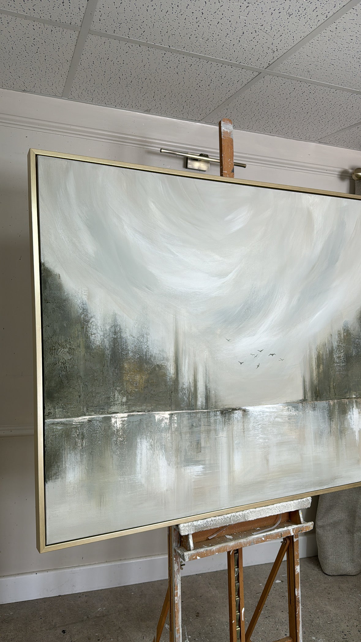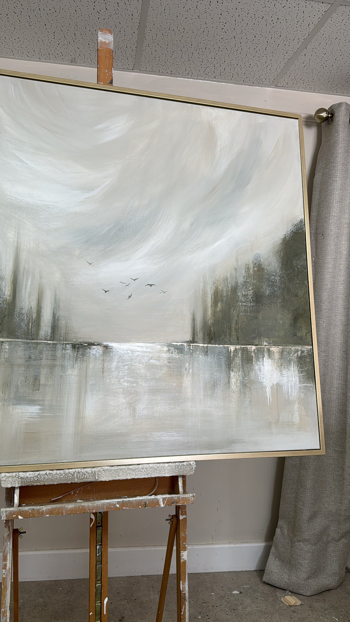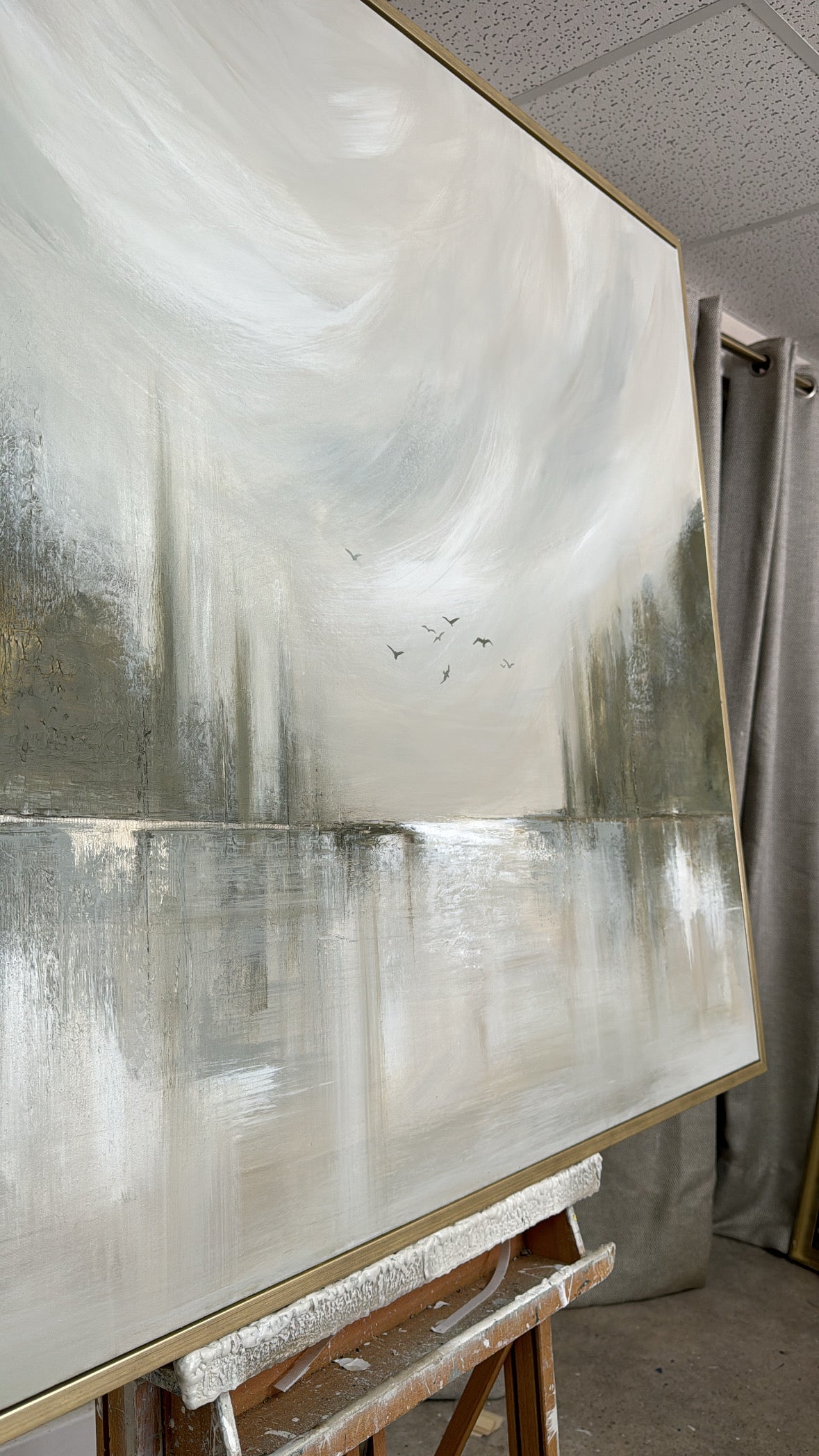 “Where the Crawdads Sing (The Gulls) Was inspired by the beautiful book and film. Featured is a 100x120 cm piece in champagne frame (framing adds an additional few centimetres all round)