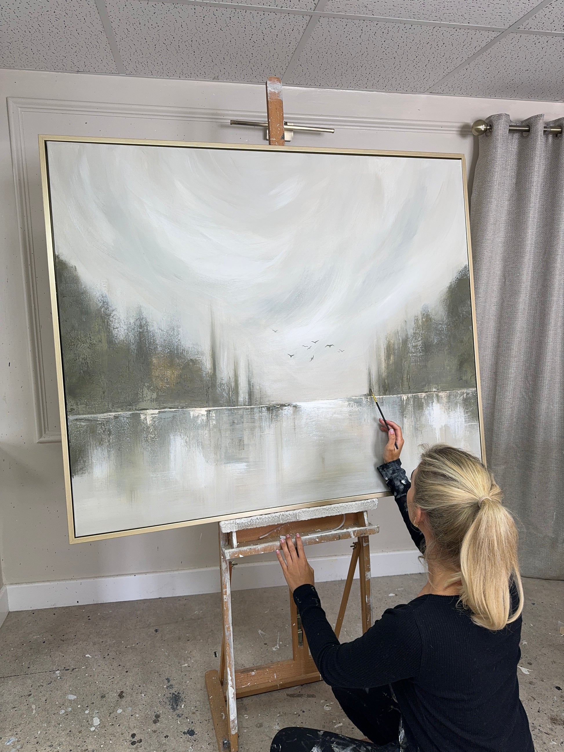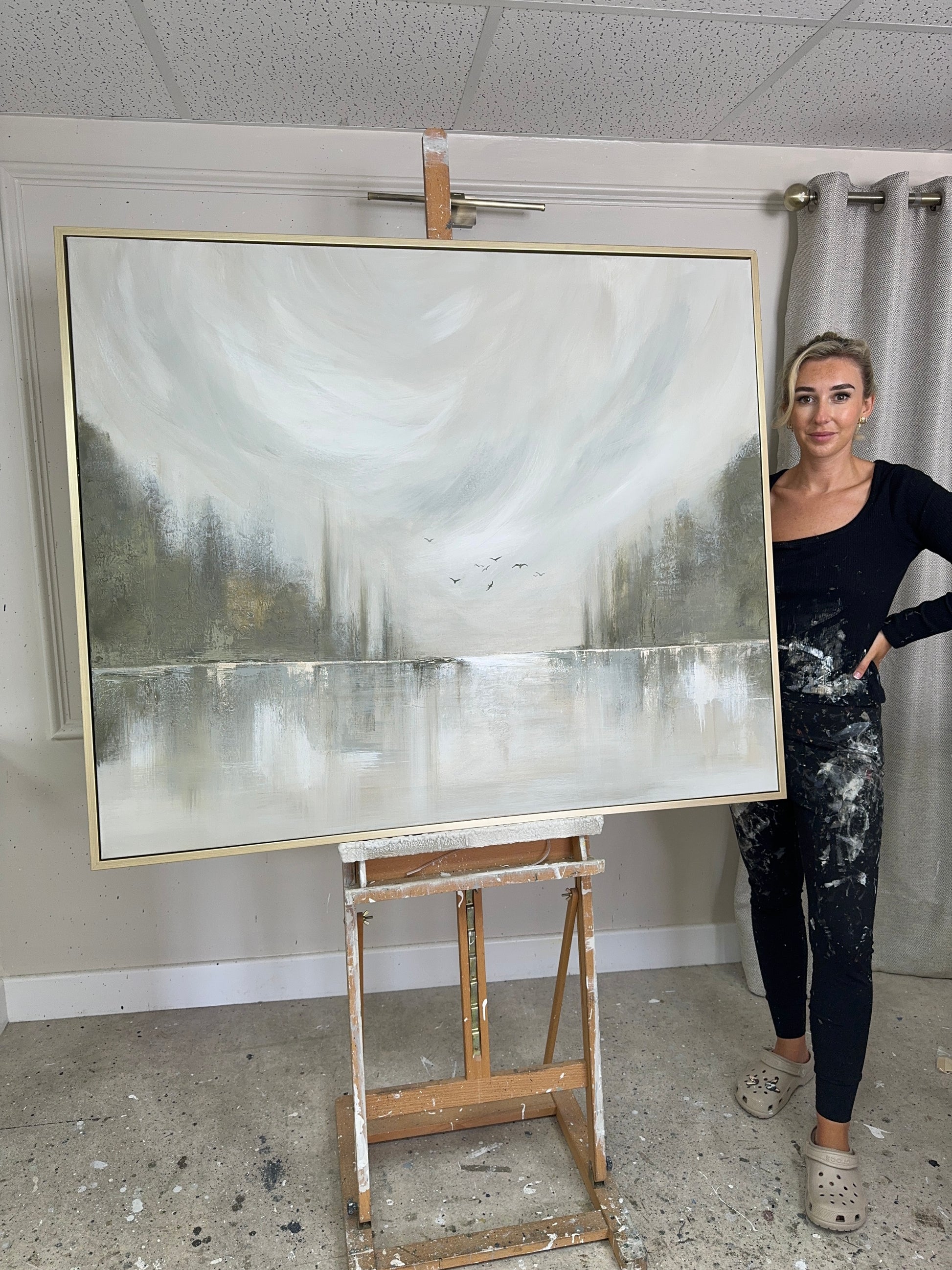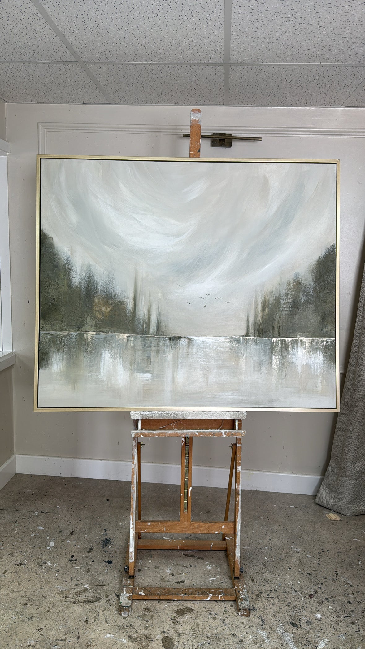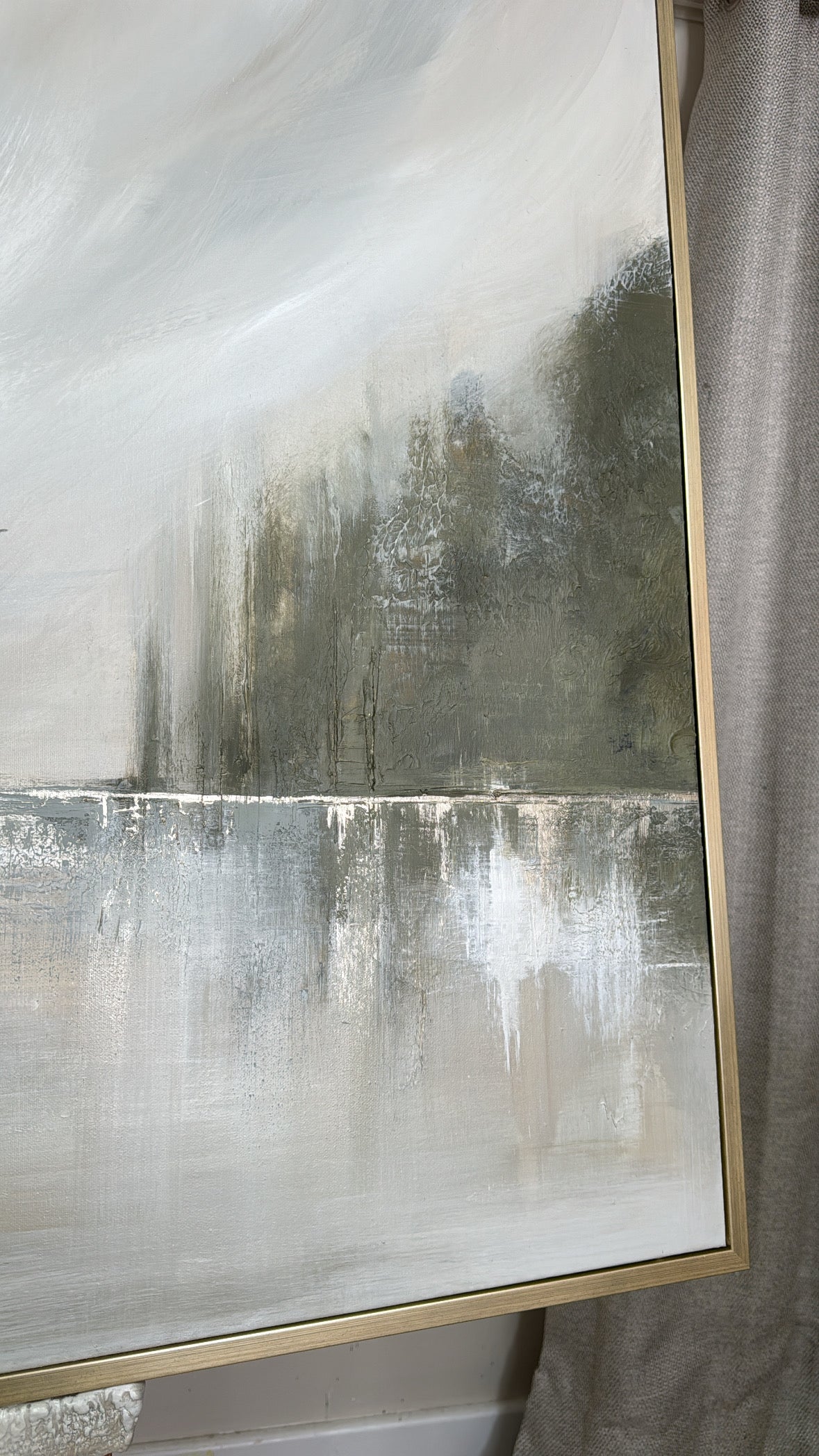 “Where the Crawdads Sing (The Gulls) Was inspired by the beautiful book and film. Featured is a 100x120 cm piece in champagne frame (framing adds an additional few centimetres all round)