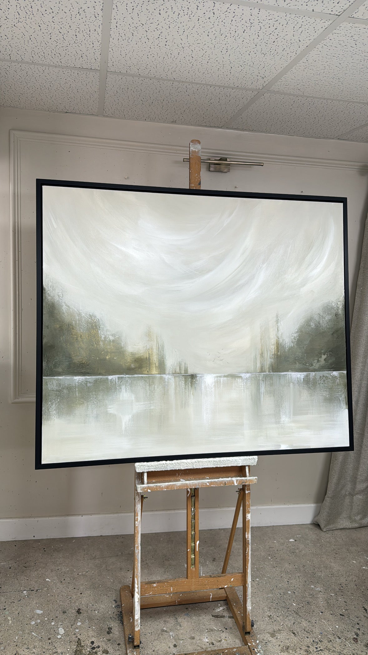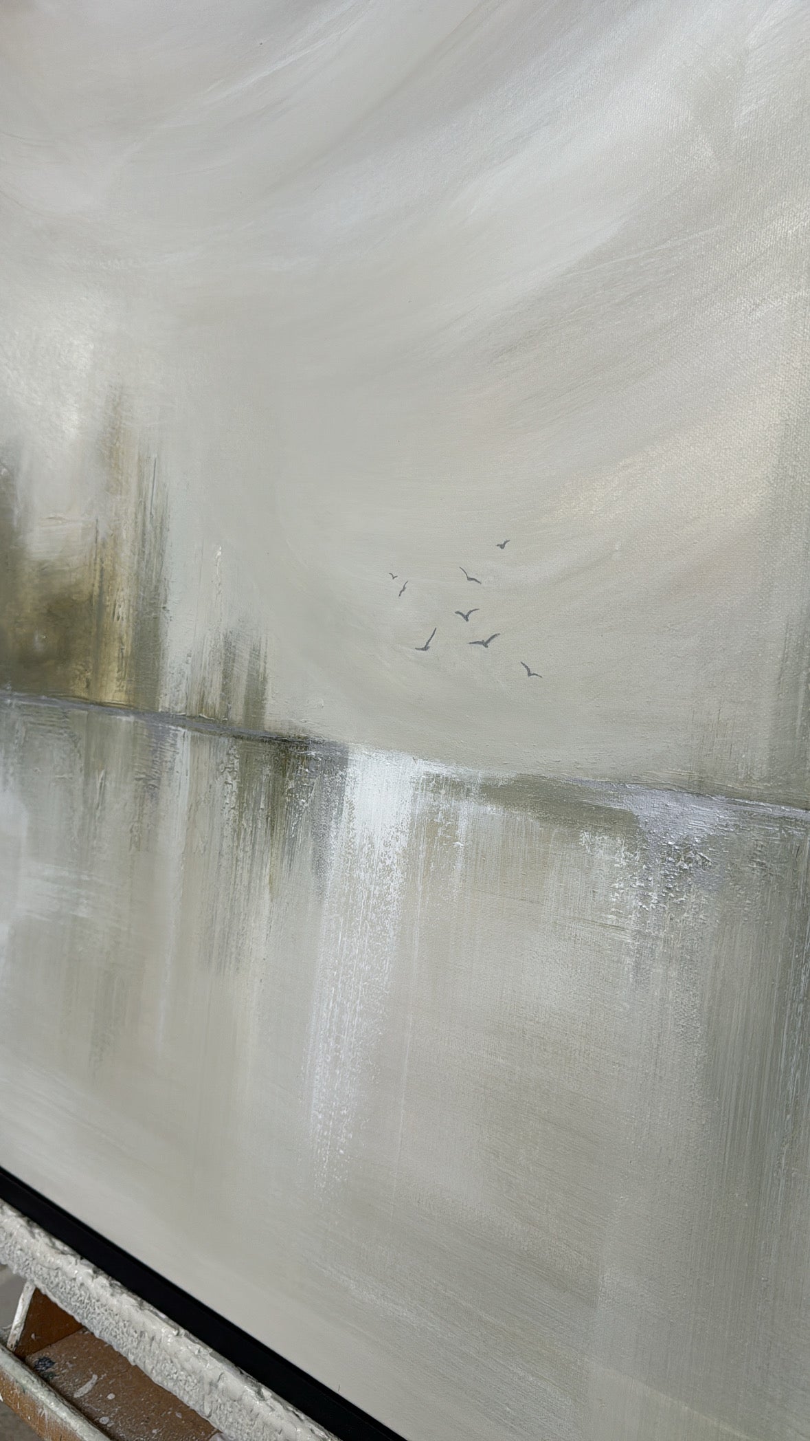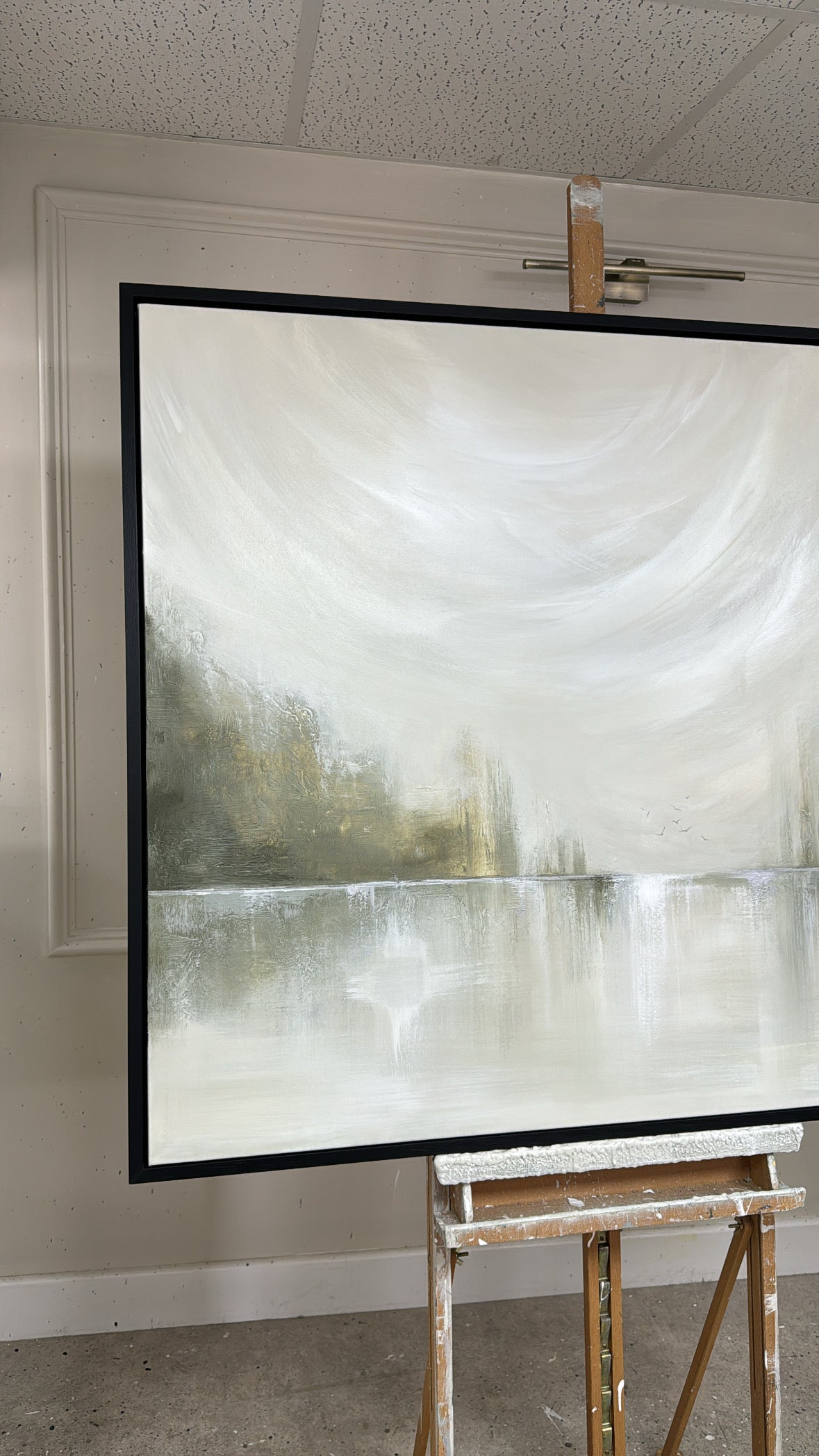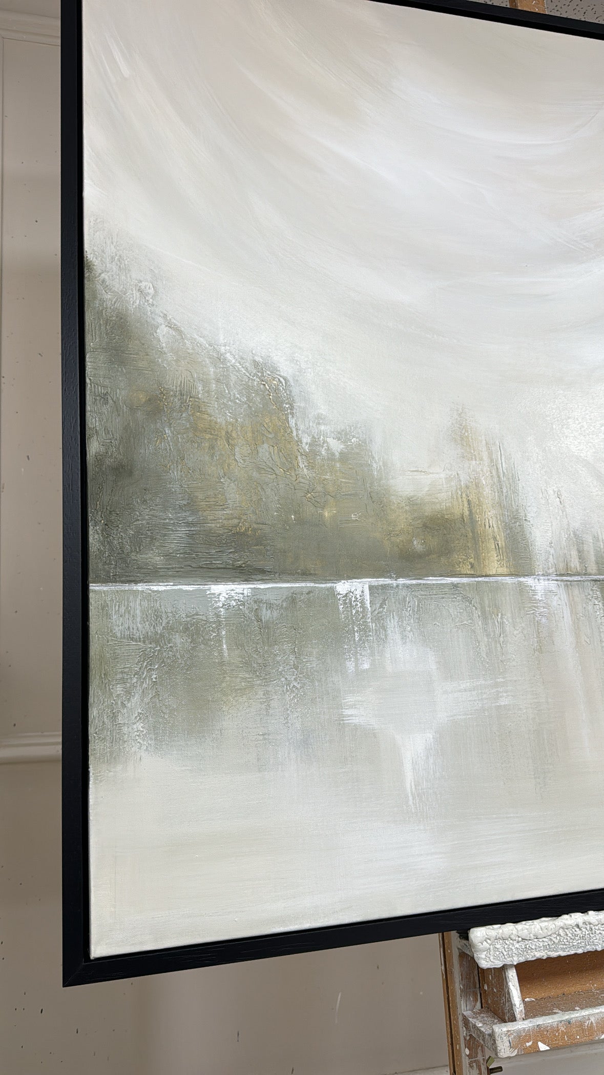 “Where the Crawdads Sing (Silver Skies) Was inspired by the beautiful book and film. Featured is a 100x120 cm piece in champagne frame (framing adds an additional few centimetres all round)